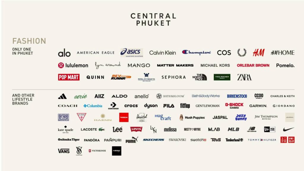 กลุ่มเซ็นทรัล บริหาร Luxury retail ในกว่า 18 ประเทศ 140 เมืองทั่วโลก และเป็นหนึ่งใน Global Strategic Partner ของเครือแบรนด์หรูระดับโลก มียอดขายมูลค่ามหาศาลต่อปี ย้ำความเชื่อมั่นให้ แบรนด์ระดับโลกยังคงเลือกเติบโตกับเราอย่างต่อเนื่อง โดยจากศักยภาพของภูเก็ตและความเชื่อมั่นที่แบรนด์มีต่อเซ็นทรัล ภูเก็ต ซึ่งพิสูจน์ได้จากยอดขายที่เติบโตต่อเนื่อง และหลายแบรนด์มียอดขายเป็นอันดับ 1 ของประเทศที่นี่ ทำให้แบรนด์ระดับโลกตัดสินใจขยายพื้นที่ร้าน พร้อมพัฒนาคอนเซ็ปต์ใหม่ในระดับแฟล็กชิป รวมถึง Phuket Exclusive items ที่มีเฉพาะที่เซ็นทรัล ภูเก็ต เท่านั้น ด้วยศักยภาพต่างๆ นี้ เราจึงเดินหน้าขยาย Luxury zone เพิ่มอีกเท่าตัว และเพิ่มจำนวนแบรนด์ลักชูรี่ต่อเนื่อง โดยภายในปี 2028 จะขยายสเกลเทียบเท่ากรุงเทพฯ ทำให้เซ็นทรัล ภูเก็ต เป็นศูนย์การค้าหนึ่งเดียวนอกกรุงเทพฯ ที่รวมแบรนด์ลักชูรี่ระดับต้นๆ ของโลกไว้เกือบครบที่สุด