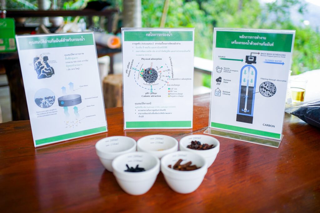 •โครงการการใช้ประโยชน์ถ่านกัมมันต์จากเปลือกกาแฟในระบบกรองน้ำ ภายใต้แนวคิดการสร้างเศรษฐกิจหมุนเวียน (Circular Economy) ช่วยลดของเหลือทิ้งจากกระบวนการผลิตกาแฟ พร้อมได้น้ำที่มีคุณภาพสม่ำเสมอสำหรับการแปรรูป และลดการใช้สารกรองในระบบ นอกจากนี้ ยังเป็นการเปลี่ยน “ของเหลือทิ้ง” ให้กลายเป็นทรัพยากรที่สร้างประโยชน์ด้านสุขอนามัยและคุณภาพชีวิตให้แก่ชุมชนอย่างเป็นรูปธรรม ขณะเดียวกันชาวชุมชนบ้านดอยช้าง อ.แม่สรวย จ.เชียงราย ได้มีน้ำสะอาดอุปโภคและบริโภค ลดภาระค่าใช้จ่ายในการจัดหาน้ำและสารกรอง และลดความเสี่ยงจากการปนเปื้อนในระยะยาว ส่งผลต่อคุณภาพชีวิตและความเป็นอยู่ที่ดี (Well-Being) อย่างยั่งยืน