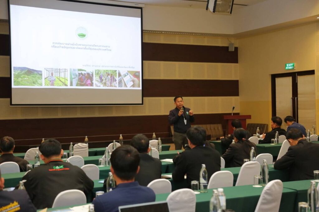นายวิรัตน์ ปราบทุกข์ ผู้อำนวยการสถาบันวิจัยและพัฒนาพื้นที่สูง (สวพส.) เป็นประธานเปิดการฝึกอบรม พร้อมบรรยายพิเศษเกี่ยวกับสถานการณ์และความท้าทายของพื้นที่สูง นโยบายภาครัฐ เป้าหมายการพัฒนาที่ยั่งยืน (SDGs) รูปแบบการพัฒนาพื้นที่สูงแบบโครงการหลวง และการประยุกต์ใช้หลักปรัชญาของเศรษฐกิจพอเพียง เพื่อสร้างกรอบแนวคิดและทิศทางการทำงานร่วมกันอย่างเป็นระบบ โดยถ่ายทอดองค์ความรู้เชิงบูรณาการ ครอบคลุมการวิเคราะห์และวางแผนพัฒนาชุมชนบนพื้นที่สูงแบบเฉพาะเจาะจงโดยใช้ข้อมูล องค์ความรู้ นวัตกรรมและงานวิจัย การบริหารจัดการด้วยเทคโนโลยีดิจิทัล ตลอดจนการเสริมสร้างศักยภาพผู้นำชุมชนและชุมชนให้สามารถขับเคลื่อนการพัฒนาได้อย่างเข้มแข็ง