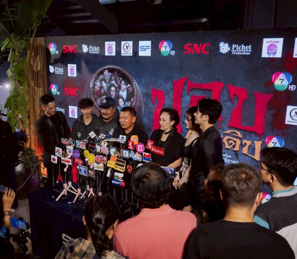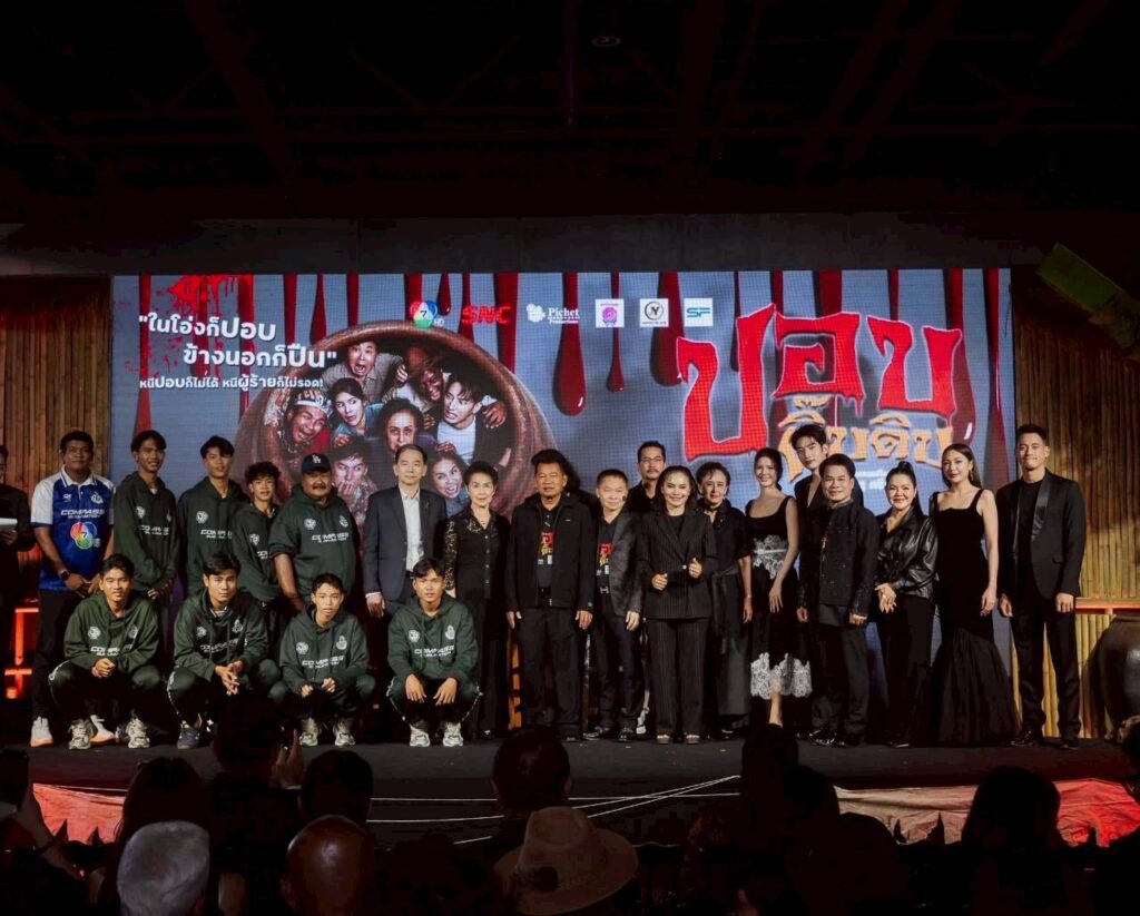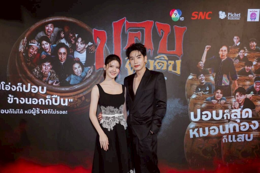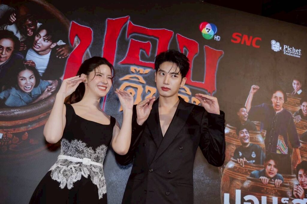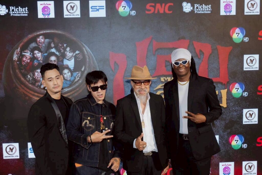 บรรยากาศงานกาล่าพรีเมียร์ เมื่อค่ำคืนวันที่ 23 ธันวาคมที่ผ่านมา ณ Sky Lobby เซ็นทรัลเวิลด์ โซนโรงภาพยนตร์ ชั้น 8 ถูกจัดให้กลายเป็นหมู่บ้านลึกลับชวนขนลุก มีทั้งดิสเพลย์สุดเอกลักษณ์ของหนังผีไทยอย่าง โอ่ง, ศาล และองค์ประกอบชวนหลอนที่พาผู้ร่วมงานให้ได้อินตั้งแต่ก้าวแรก พร้อมร่วมสร้างประสบการณ์ “ฮาสยอง” ก่อนเข้าโรงจริง และภายในงานไม่ได้มีเพียงแค่การเปิดตัวภาพยนตร์เท่านั้น แต่ยังถือเป็นงานรวมพลคนบันเทิงครั้งยิ่งใหญ่ นำโดย “ป๋าโก๋-พิเชษฐ ศรีราชา” ผู้กำกับและหัวเรือใหญ่ Pichet Productions พร้อมด้วยทัพนักแสดงนำไว้ครบทีม ไม่ว่าจะเป็น วรากร ศวัสกร, ณัฐชา รัตน์ชยางคานนท์, พูลภัทร อัตถปัญญาพล , อัศนัย เทศทะวงศ์, ราวรรณ โทนะหงษา , ถั่วแระ เชิญยิ้ม และอีกมากมาย