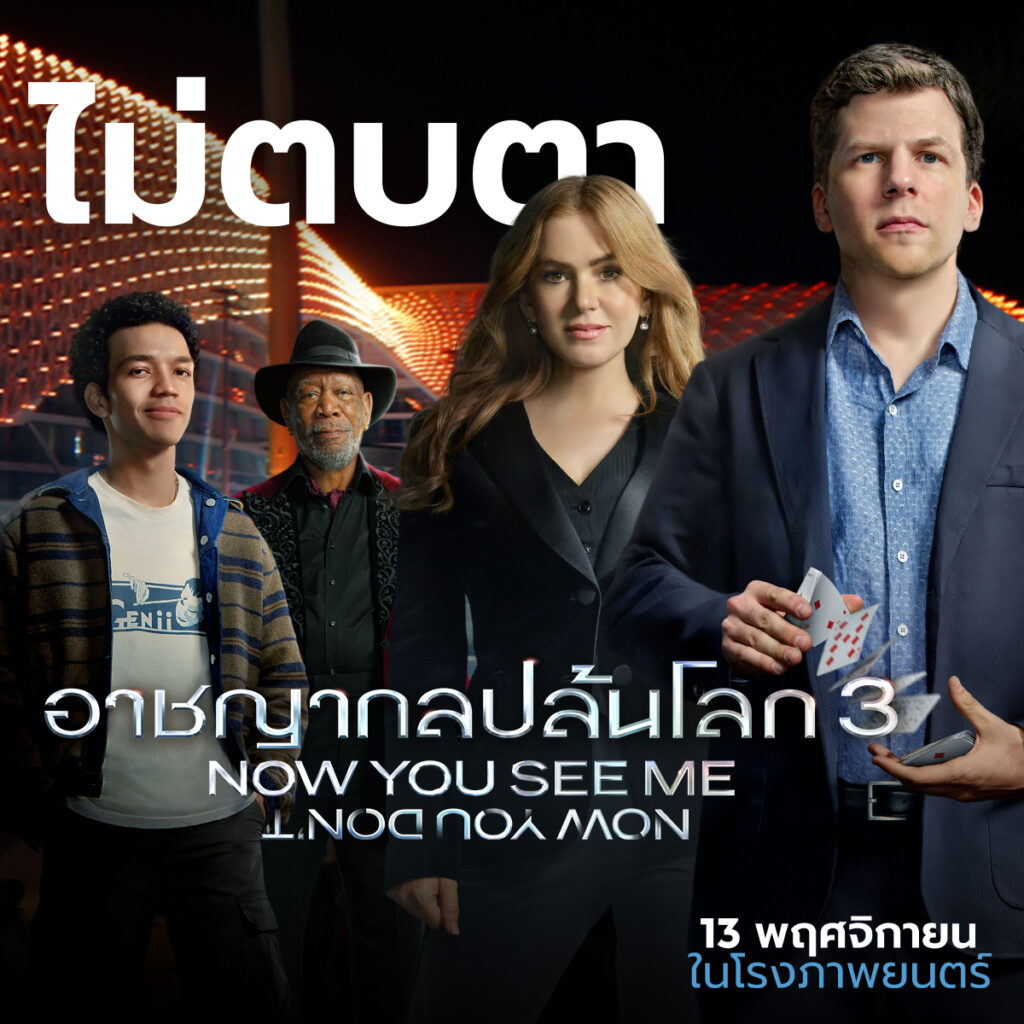 “จตุรอาชา” กลับมาแล้ว พร้อมแท็กทีม “นักมายากลรุ่นใหม่” ที่จะมาแสดงกลสุดล้ำ หักมุมเกินคาดเดา และใช้เวทมนตร์แบบเรียลไทม์อย่างที่ไม่เคยปรากฏในโลกภาพยนตร์มาก่อน กับ “ภารกิจโจรกรรม” ครั้งใหญ่ที่สุดในประวัติศาสตร์ เพื่อเอาคืน “เหล่าวายร้าย” อย่างสาสมใน “Now You See Me: Now You Don’t อาชญากลปล้นโลก 3” มันส์ก่อนอเมริกา 13 พฤศจิกายนนี้ ในโรงภาพยนตร์