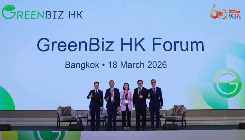 18 มีนาคม 2569 – องค์การสภาพัฒนาการค้าฮ่องกง (HKTDC) เปิดตัวแคมเปญ GreenBiz HK ณ โรงแรมแกรนด์ เซ็นเตอร์ พอยต์ ลุมพินี กรุงเทพฯ ภายในงานประกอบด้วย การประชุมเฉพาะหัวข้อ กิจกรรมสร้างเครือข่าย และการประชุมจับคู่ธุรกิจ โดยมีคณะผู้แทนจาก “Hong Kong Green Team” และผู้แทนจากภาครัฐและภาคธุรกิจทั่วประเทศไทยเข้าร่วมกว่า 550 คน ดร. ชัชชาติ สิทธิพันธุ์ ผู้ว่าราชการกรุงเทพมหานคร ได้ให้เกียรติเข้าร่วมงาน และกล่าวเปิดการประชุมในเวทีดังกล่าว เพื่อส่งเสริมความร่วมมือด้านเศรษฐกิจสีเขียวระหว่างฮ่องกงและไทย การสัมมนาครั้งนี้ มีเป้าหมายเพื่อส่งเสริมการแลกเปลี่ยนด้านการเงินสีเขียว เทคโนโลยีสีเขียว ห่วงโซ่อุปทาน การพัฒนาเมืองอัจฉริยะอย่างยั่งยืน และการเสริมสร้างความสัมพันธ์ทางเศรษฐกิจและธุรกิจที่มีมายาวนานระหว่างไทย-ฮ่องกง รวมถึงการแสดงบทบาทของฮ่องกงในฐานะศูนย์กลางการเงินสีเขียวและนวัตกรรมระดับนานาชาติ