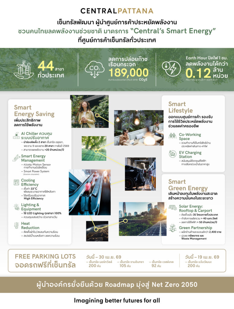 กรุงเทพฯ – บริษัท เซ็นทรัลพัฒนา จำกัด (มหาชน) ผู้นำเบอร์หนึ่งอสังหาริมทรัพย์ไทยสู่ความยั่งยืน และผู้นำศูนย์การค้าประหยัดพลังงาน เดินหน้ายกระดับมาตรการ ‘Central’s Smart Energy’ ที่ศูนย์การค้าเซ็นทรัล 44 สาขาทั่วประเทศ ขับเคลื่อนการใช้พลังงานอย่างมีประสิทธิภาพ สอดรับสถานการณ์ด้านพลังงานของโลก พร้อมรณรงค์คนไทยร่วมใจลดพลังงานช่วยชาติ เพื่อเป้าหมายองค์กร Net Zero 2050