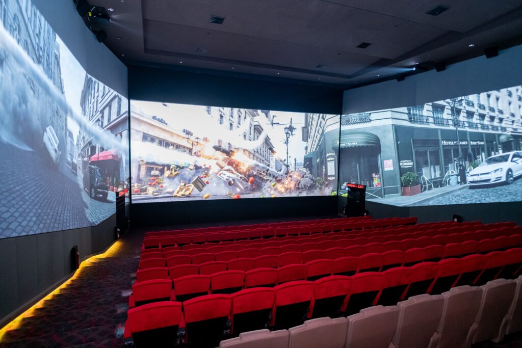 • Panoramic View 270 องศา : การฉายภาพด้วยเครื่องฉายรุ่นใหม่ล่าสุด 3 เครื่อง ครอบคลุมจอภาพ